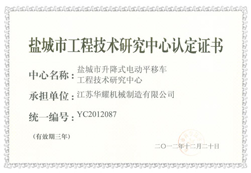 鹽城市工程技術研究中心認定證書