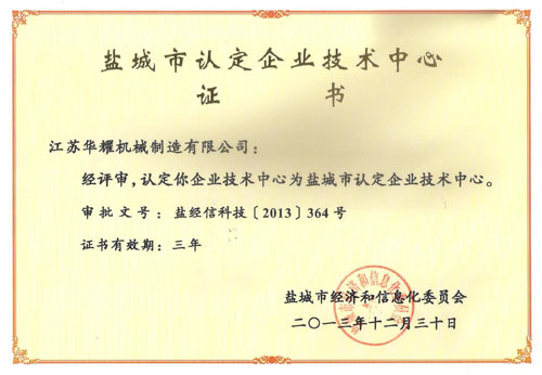 鹽城市企業認定技術中心證書